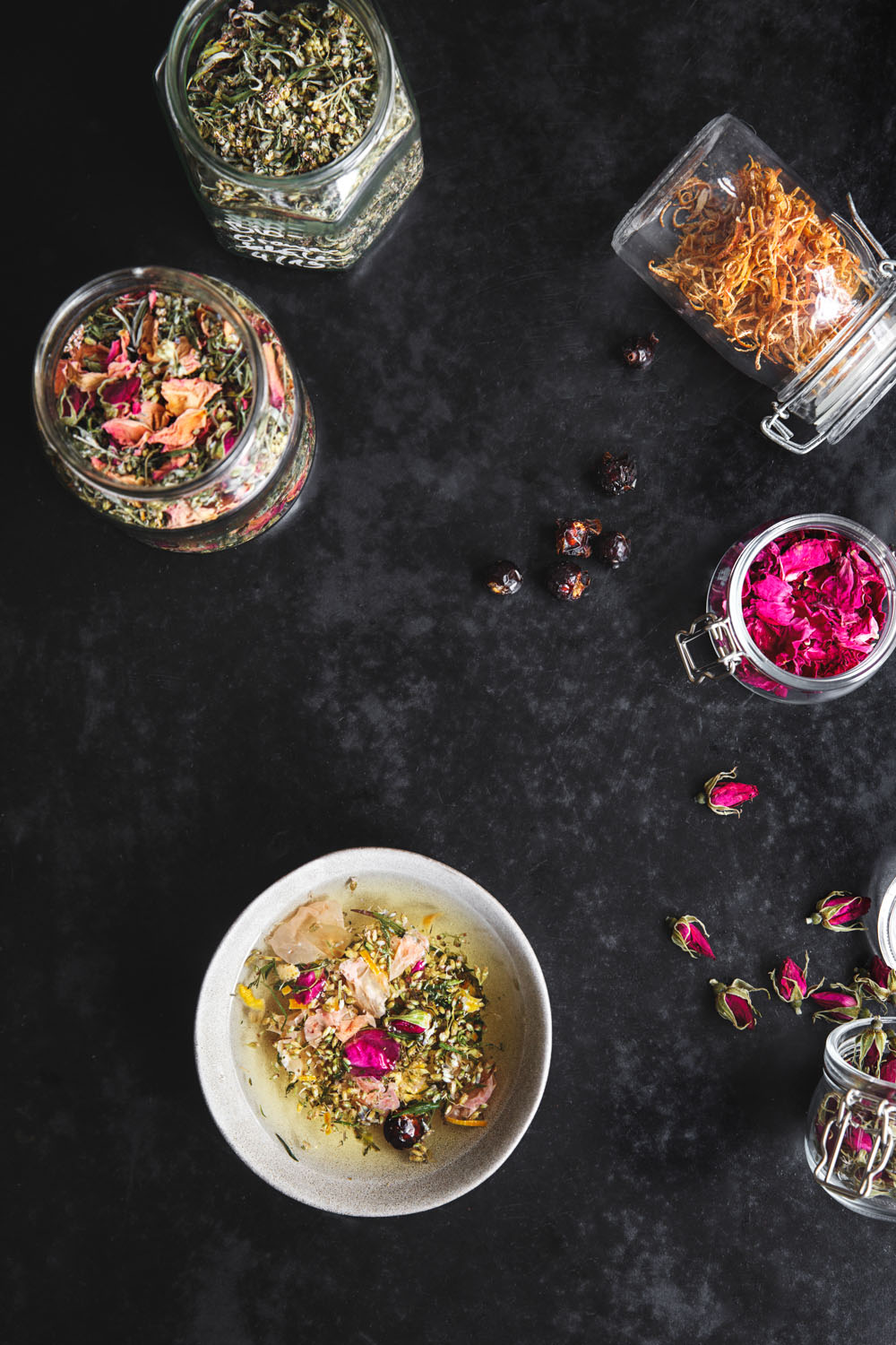 Insgesamt sollte ein gut gemischter Heiltee also mindestens aus drei Zutaten bestehen und maximal aus neun. Und sie sollten einander nicht stören, sondern am gleichen Strang ziehen und oder einander verstärken.